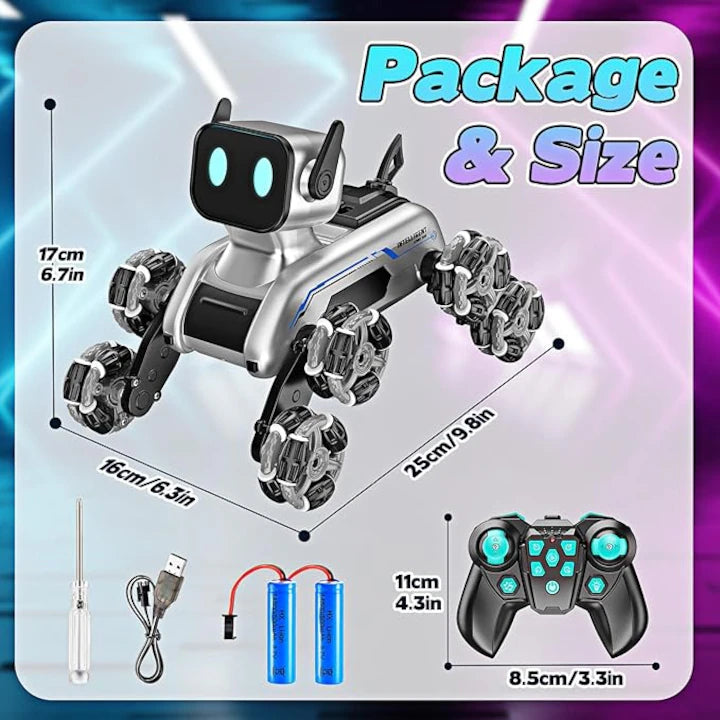 Ești pregătit să aduci jocul copiilor la un alt nivel? Acest cățel robot interactiv combină mișcări spectaculoase, lumină, muzică și un ecran LED animat pentru a oferi o experiență de joacă complet diferită. Cu design modern, roți omni-direcționale și acrobații 360°, jucăria devine instant preferata celor mici. Perfect pentru acasă sau în aer liber, le oferă copiilor ore întregi de distracție, interacțiune și creativitate.